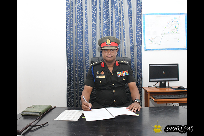 Colonel B P Udage USP signed an official document at auspicious time to symbolizing the acceptance of the new office. Officers and Other ranks from the General Staff Branch and Admin and Quartering Branch participated for the event.
