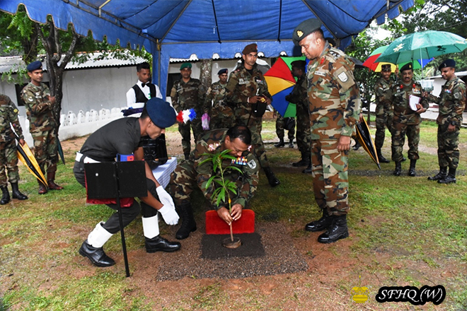 Upon arrival, the visiting senior officer was warmly received by Brigadier B N S B Rangama RSP USP psc, Commander of the 213 Infantry Brigade. A ceremonial Guard of Honour was presented in honour of the General Officer Commanding, followed by the planting of a sapling in front of the parade ground, symbolising environmental stewardship.