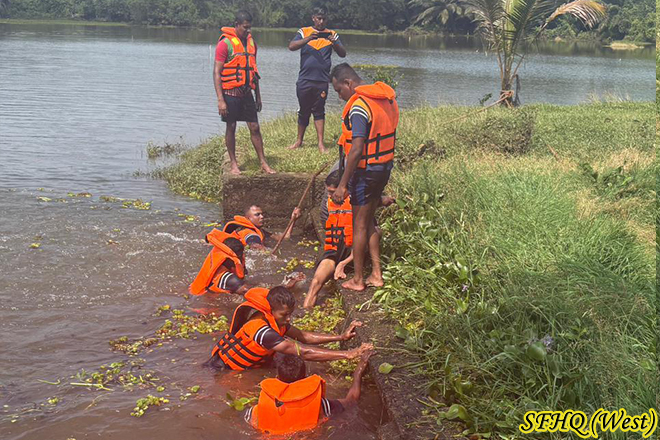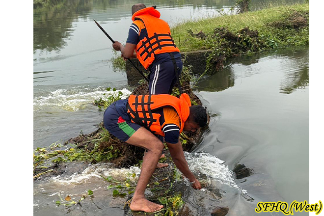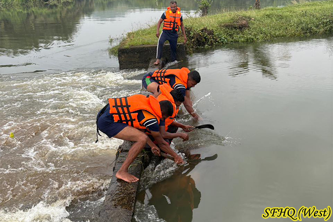 Following the normalization of the recent flood situation, a team of ti Officer and 10 Other Ranks of 1 Sri Lanka Army Pioneer Corps (1 SLAPC) undertook the cleaning of the Dadupure Welya Anicut in the Millaniya area. Coordinating closely with local villagers, the troops worked to remove debris that had obstructed the water flow. Their timely effort helped restore the anicut’s function, supporting irrigation needs and benefiting the surrounding community.