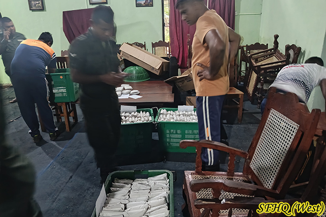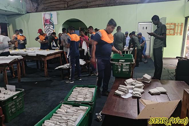 Following instructions of the 14 Infantry Division, troops of the 14 Vijayabahu Infantry Regiment distributed 750 meal packets to residents at a relief centre in Kolonnawa on 29 November 2025. This timely humanitarian support ensured that families affected by the ongoing flood situation received essential food assistance, reflecting the continued commitment of Sri Lanka Army towards community welfare during emergencies.