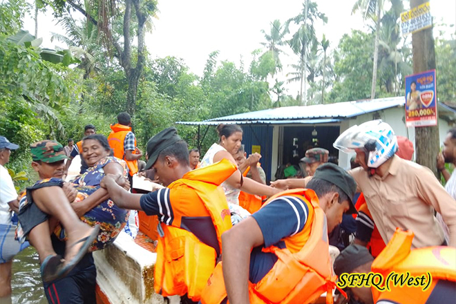 On 29 November 2025, troops of the 141 Brigade carried out a successful rescue operation in the general areas of Thihariya and Pahalagama, where severe flooding had stranded numerous residents. A total of 61 civilians including 32 males, 18 females, and 11 children were safely evacuated to secure locations. The swift and coordinated effort ensured the protection and well-being of all rescued individuals during the adverse weather conditions.