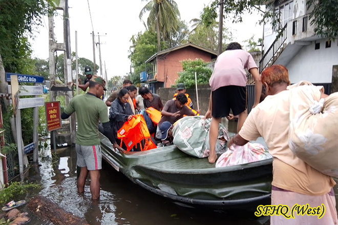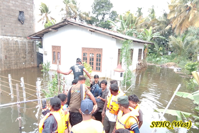 On 29 November 2025, troops of the 2(V) Sri Lanka Light Infantry conducted a rescue operation in the Welewaththa, Orugodawathha and Ambathale areas, where rising floodwaters had trapped many residents. A total of 407 individuals; 114 males, 149 females, and 98 children in 98 families were safely evacuated. The timely and coordinated response ensured the protection and well-being of all affected families during the severe flooding.