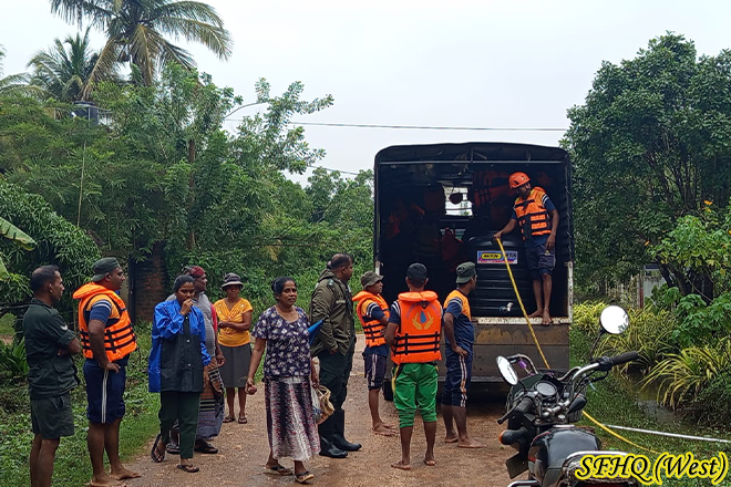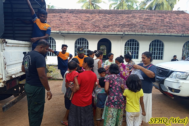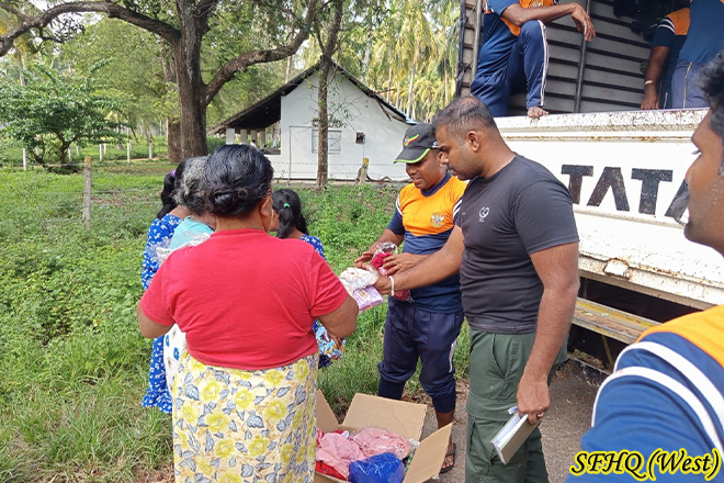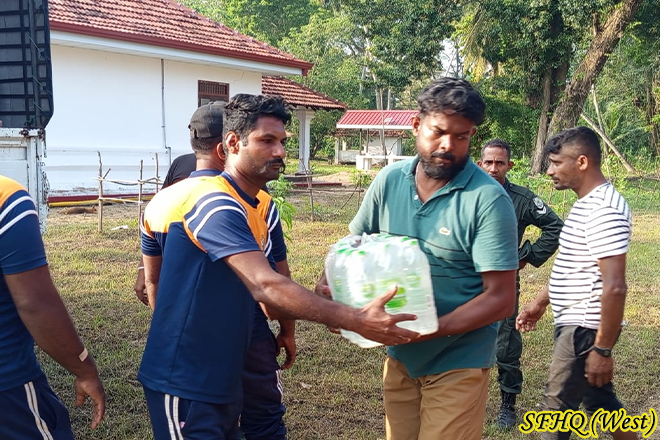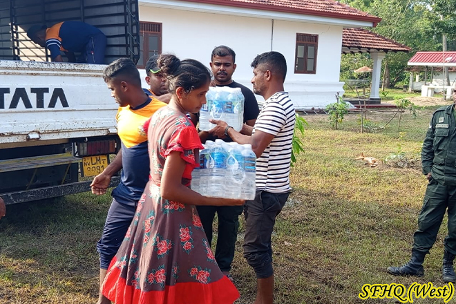 For three consecutive days, two Officers and sixteen Other Ranks of the 22 Gajaba Regiment carried out a dry ration and drinking water distribution programme in the Arachchikattuwa area. This humanitarian effort aimed to uplift the living standards of residents severely affected by the recent floods. The timely intervention of the troops provided essential relief and strengthened community resilience during the ongoing recovery period.