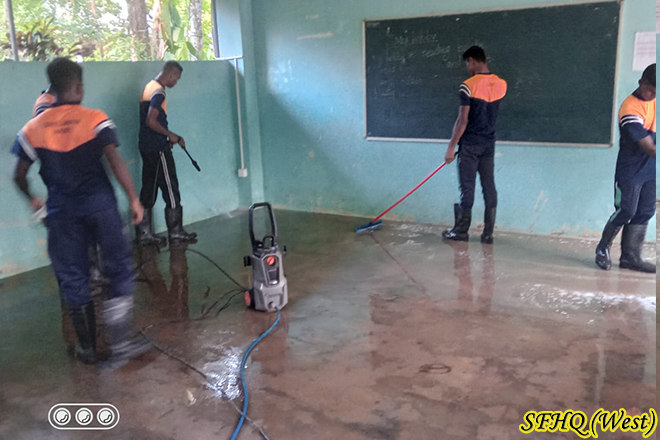 On 4 December 2025, a team of sixteen soldiers including an Officer from the 5 Sri Lanka Signal Corps carried out a cleaning programme at Sudharshanaramaya Piriwena, Avissawella. Their efforts helped restore the temple premises following recent adverse weather, ensuring a clean and orderly environment for the resident clergy and devotees. The initiative reflects the Army continued commitment to community service.