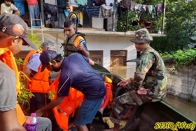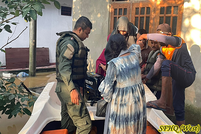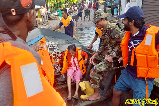 On 30 November 2025, troops of the 8 Sri Lanka Light Infantry carried out a large-scale rescue operation in Kalukodayawa, Malwana and Mabima where severe flooding had stranded numerous residents. A total of 91 individuals including 17 children were safely evacuated to secure locations. The swift and well-coordinated effort ensured the protection and well-being of all those affected by the rising waters.