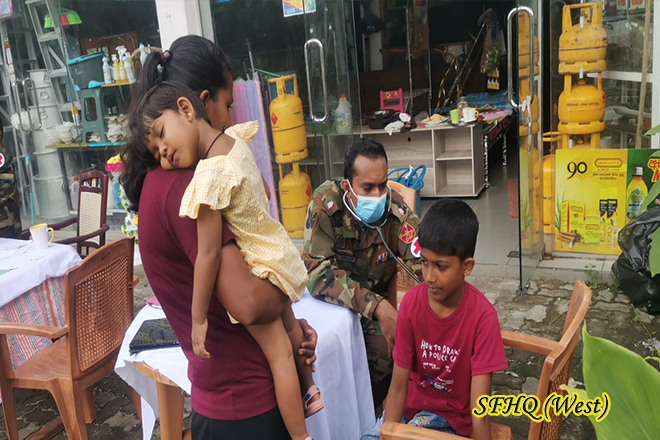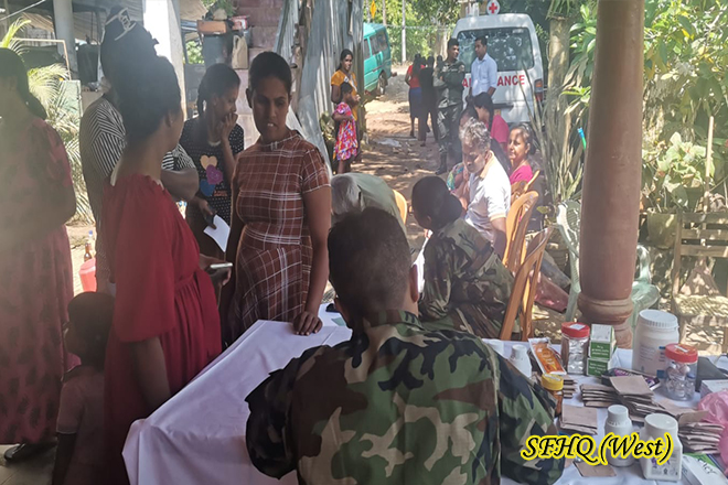 A mobile medical campaign was conducted in the Walauwatta, Ranala area on 5 December 2025 after floodwaters receded, providing essential healthcare to affected residents. A total of 182 individuals received treatment during the programme, supported by a medical team consisting of one doctor and two nurses from the Army Base Hospital, Panagoda. Additionally, one Officer and two Other Ranks from the 144 Infantry Brigade ensured smooth administrative coordination throughout the campaign.