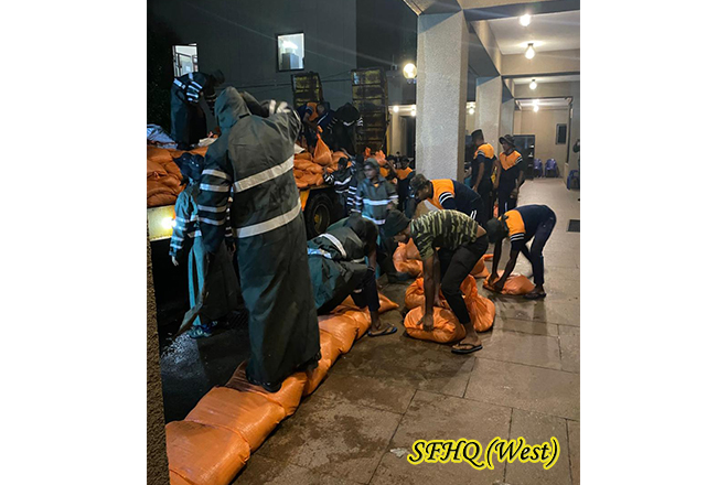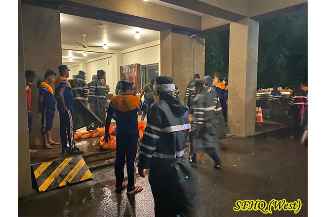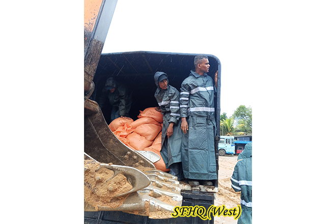 On 28 November 2025, a combined team of troops undertook essential flood-prevention measures around the Parliament area. The effort included 3 Officers and 70 Other Ranks from the 12 Sri Lanka Singha Regiment, 23 Other Ranks from the 144 Brigade, and 22 Other Ranks from the 2(V) Sri Lanka Light Infantry. The troops efficiently laid sandbags to reinforce vulnerable points, helping safeguard the premises from rising floodwaters.