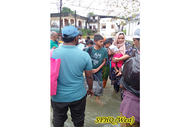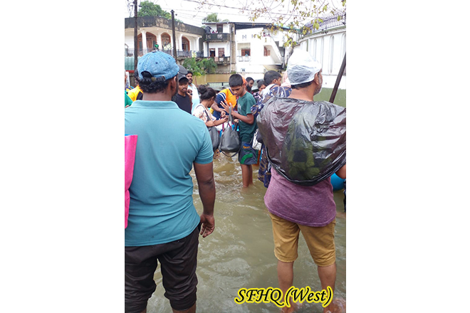 Responding promptly to the emergency, soldiers of the 11 Gemunu Watch (11 GW) reached the affected location and facilitated the safe evacuation of all individuals at risk. The rescued civilians were subsequently transported to the Maha Palliya Rathnapura premises, where they were provided with essential.
