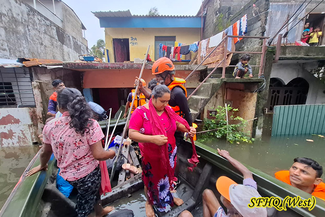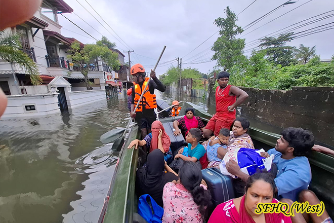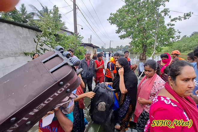 A total of 91 flood-affected individuals from 28 families were safely rescued in the Kotuvila area as rising waters threatened their homes. Among those evacuated were 34 males, 31 females, and 26 children. The rescue teams responded fast to ensure the safety of all residents, providing essential support during the emergency and preventing further risk to the affected families.