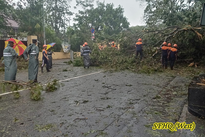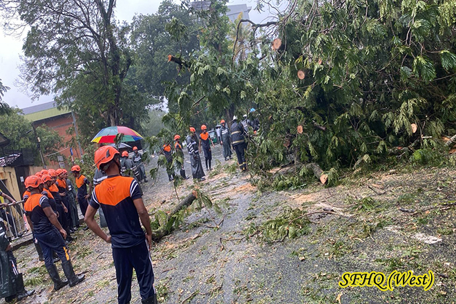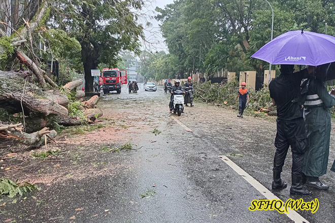 No injuries or property damage were reported. Troops from the 14 Vijayabahu Infantry Regiment (14 VIR)—including four officers and twenty soldiers—quickly arrived at the scene. They cut and removed the fallen tree, cleared debris, and reopened the road to traffic.