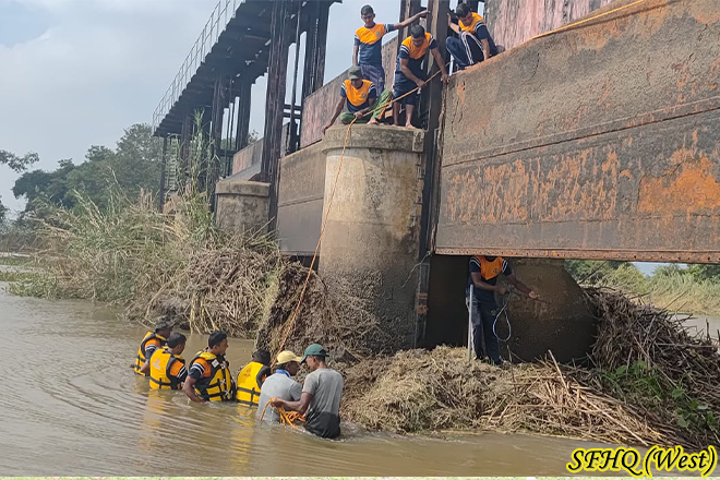 Kadupiti Oya, which supplies water to the Nelumpokuna Water Purification Plant, was disrupted by soil and debris, reducing the water supply. Responding swiftly, troops of the 22 Gajaba Regiment cleared the dam area in Madampe. After two days of continuous effort, the obstruction was removed, restoring normal water flow to the treatment plant.