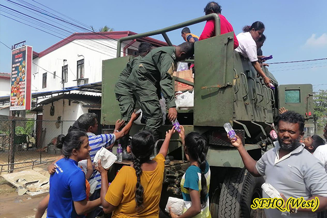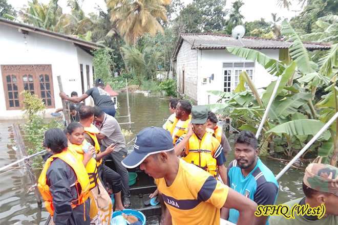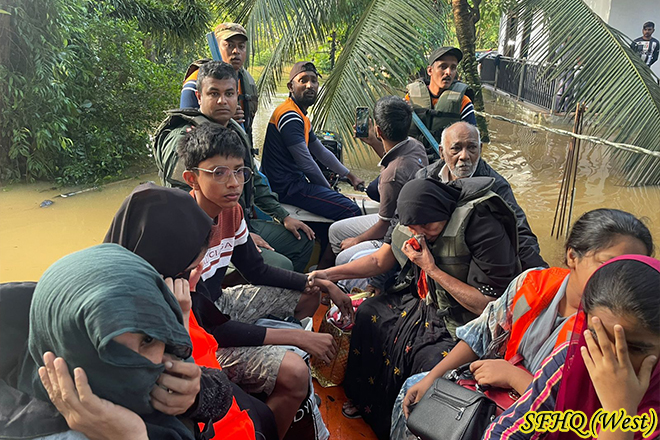 On 29 November 2025, troops of the 2(V) Sri Lanka Light Infantry conducted a rescue operation in the Welewaththa, Orugodawathha and Ambathale areas, where rising floodwaters had trapped many residents. A total of 407 individuals; 114 males, 149 females, and 98 children in 98 families were safely evacuated. The timely and coordinated response ensured the protection and well-being of all affected families during the severe flooding.