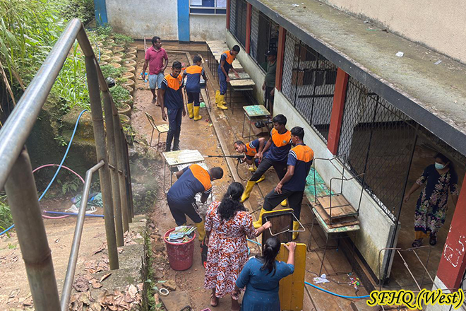 Request made by the Divisional Secretary of Sitawaka and the Principal of St. Mary's National School, Avissawella to the Commander of the 142 Infantry Brigade, on 2025/12/02, 01x25 troops belonging to Sector 10 were deployed to clean and restore the premises of St. Mary's National School, Avissawella, which had damaged and become dirty due to the flood situation.