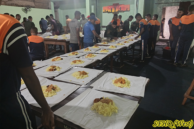 Following instructions of the 14 Infantry Division, troops of the 14 Vijayabahu Infantry Regiment distributed 750 meal packets to residents at a relief centre in Kolonnawa on 29 November 2025. This timely humanitarian support ensured that families affected by the ongoing flood situation received essential food assistance, reflecting the continued commitment of Sri Lanka Army towards community welfare during emergencies.