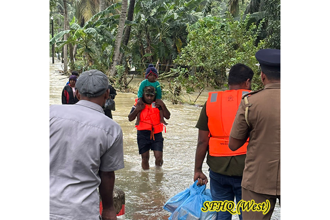 On 29 November 2025, troops of the 141 Infantry Brigade conducted a timely rescue operation in the Medawatta area, where rising floodwaters had endangered several families. A total of 23 civilians, 15 males, 6 females, and 2 children were safely evacuated to secure locations. The swift response and coordinated efforts of the troops ensured the well-being and protection of all affected individuals during the challenging conditions.